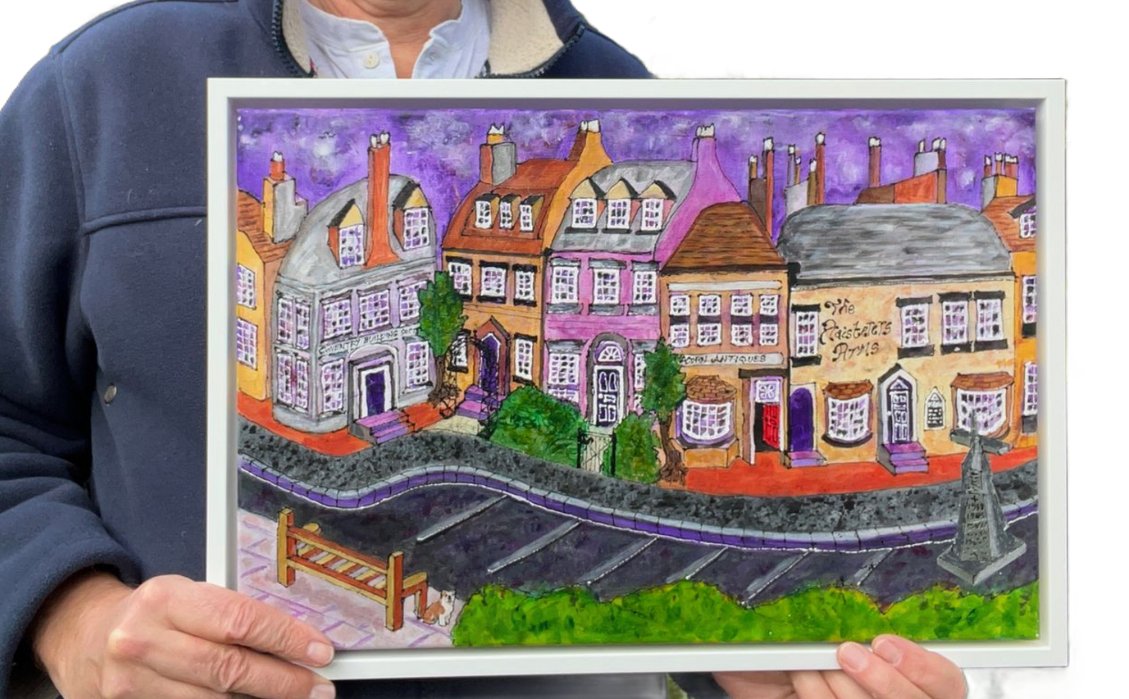 So I'm nearly 6 years old now and I live in the Cotswolds. I go on lots of walks and whilst doing that, my Artist owner loves to take photo's and then, we we get home, he create's lots of paintings and mixed media artwork based on the gorgeous buidings and surrounding's we've seen.
